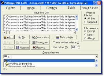 PalMerge incluye también una paleta de color y de tonalidades de gris.